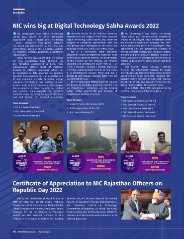 1 NIC Chattisgarh wins Digital Technology 2 The Web Portals for Jan Shikshan Sansthan 3 NIC Chhattisgarh bags Digital Technology
